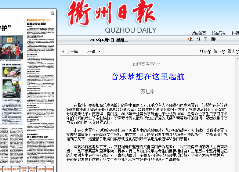 衢州日报:衍声高考琴行 音乐梦想从这里起航